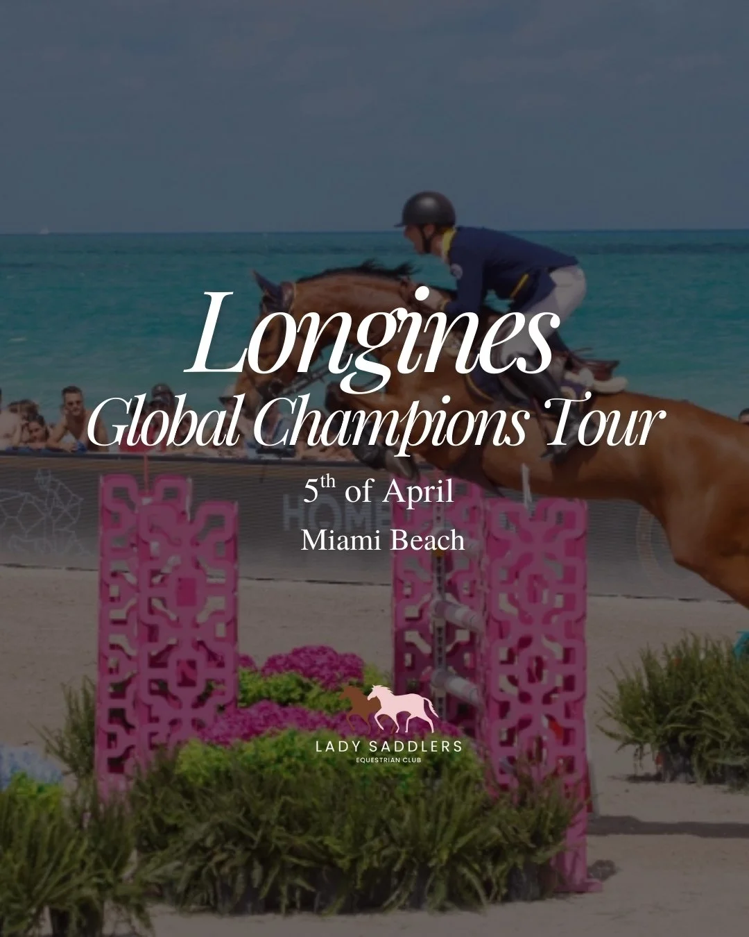 The pristine white sands and sparkling blue waters of Miami’s South Beach set the stage for one of the most glamorous stops on the global equestrian calendar. Join Lady Saddlers for an exciting day as we head to the Longines Global Champions Tour 2026.